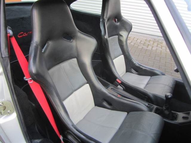 Die 964 RS Modelle sind im Prinzip Rennwagen mit Straßenzulassung ab Werk und entstanden als obligatorische Homologationsfahrzeuge zum 1990 neu gegründeten Markenpokal Porsche Carrera Cup. Als Basisversion ein sogenannter ,,Teppich RS`` wurden 1.916 Fahrzeuge produziert. Durch das geänderte Steuergerät hat der 964 RS zehn PS mehr Leistung, 260 PS und durch das Einmassenschwungrad ein direkteres Drehmoment. Die Karosserie ist 4 cm tiefer. Um Gewicht zu sparen, ist die vordere Haube aus Aluminium und die 17-Zoll Felgen aus Magnesium. Die Seiten- und Heckscheibe sind aus dünnerem Glas gefertigt. Aus Gewichtgründen wurden zusätzlich noch der Unterbodenschutz, die Rücksitzbank, der Airbag, die Klimaanlage das Radio, die ZV, die el.Fenster, keine NSW nur Blenden, die el. Spiegel, weggelassen. Anstatt „normale Sitze“ wurden Sportschalensitze sowie Türschlaufen anstatt Griffe verbaut. Dazu kommt die Bremsanlage „vorne Turbobremse und hinten vom Cup Porsche“. Bei unserem RS sind die Teile mit den zum Fahrzeug passenden Produktionsnummern noch erhalten. Selbst das originale RS-Lenkrad ist im Fahrzeug, die Recarositze tragen noch die Werksnummer und sind mit der in der Karosserie vermerkten Nummern gleich. Die Instrumente tragen alle die gleichen VDO Stempel von Nov.1991! Da diese Fahrzeuge gern bis in die 2000er Jahre noch überwiegend in verschiedenen Rennserien gelaufen sind, vermuten wir, das ca. ein Drittel leider unwiederbringlich verloren gegangen ist. Wie viele Fahrzeuge es noch mit Originalmotor und RS-Getriebe dazu mit der org. Alu-Haube, den ersten org. Recaro-Sitzen, org. Dünnglass sowie den ultra raren Magnesium-Felgen, dazu noch mit Porsche Zertifikat ,,Matching-Numbers`` gibt, konnte uns die Porsche Classic Abteilung nicht mitteilen, es dürften allerdings nur noch wenige sein.